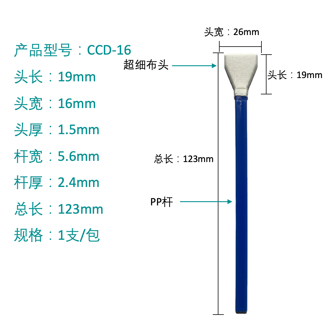 "پرز کم" به این معنی است که نوک سواب از موادی ساخته شده است که ریزش الیاف را به حداقل می رساند. "بدون استاتیک" به این معنی است که سواب از موادی ساخته شده است که بار الکترواستاتیکی را از بین می برند و از تخلیه ناگهانی که می تواند به مدارهای مجتمع آسیب برساند، جلوگیری می کند.